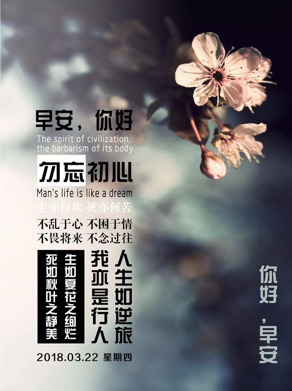 2、当你被命运选中,你逃也逃不掉。命运从来不会阻碍,只是为你界定了一个范围,你可以在其中自由,张扬。你的路只能是自己走,一路坚强,一路喜悦。有梦想就该去追。早安!