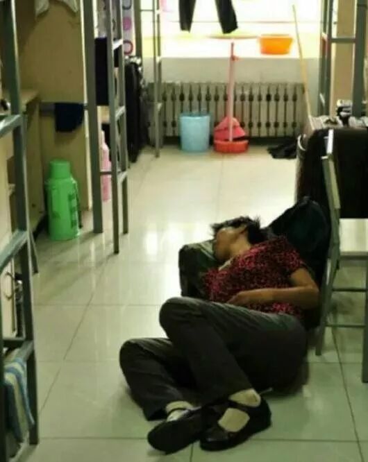 一位母亲送孩子去大学报到,给孩子铺好床铺以后,累得在坚硬的地板上睡着了……