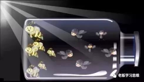 把一些蜜蜂和苍蝇同时放进一只敞口玻璃瓶里,