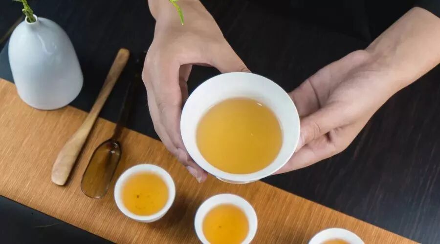 第三品是品茶的韵味。将茶汤含在口中,像含着一朵鲜花一样慢慢咀嚼,细细品味,吞下去时还要注意感受茶汤过喉时是否爽滑。