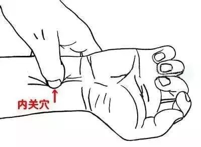 内关穴位于前臂掌侧,当曲泽与大陵的连线上,腕横纹上2寸,掌长肌腱与桡侧腕屈肌腱之间。