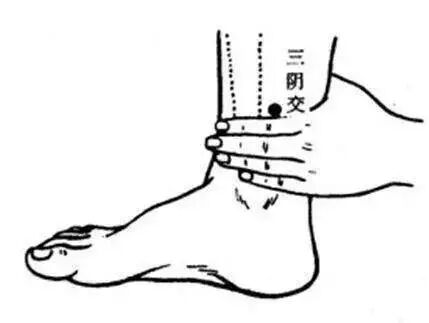 三阴交位于小腿内侧,当足内踝尖上3寸,胫骨内侧缘后方,为脾经、肾经、肝经交会之处,可健脾益血,调肝补肾。也有安神之效。