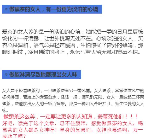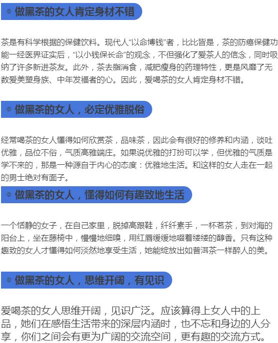 这样的说法真的很对,但实在太low了。不知道那位大神总结了黑茶女人的优点,让你读完,忍不住想说:遇到这样的女人就娶了吧!