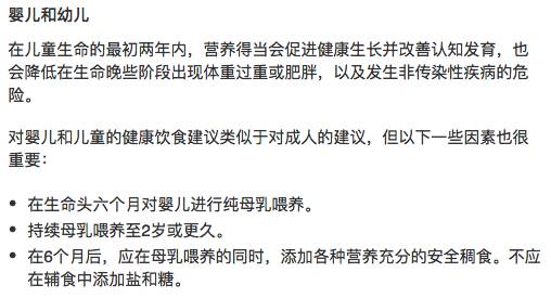 此外,世界卫生组组2015年的文件里,也明确说了“在6个月后,应在母乳喂养的同时,添加各种营养充分的安全稠食。不应在辅食中添加盐和糖。”