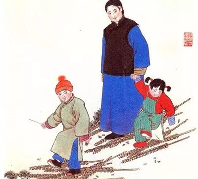 旧时大寒时节的街上,常有人们争相购买芝麻秸的影子。