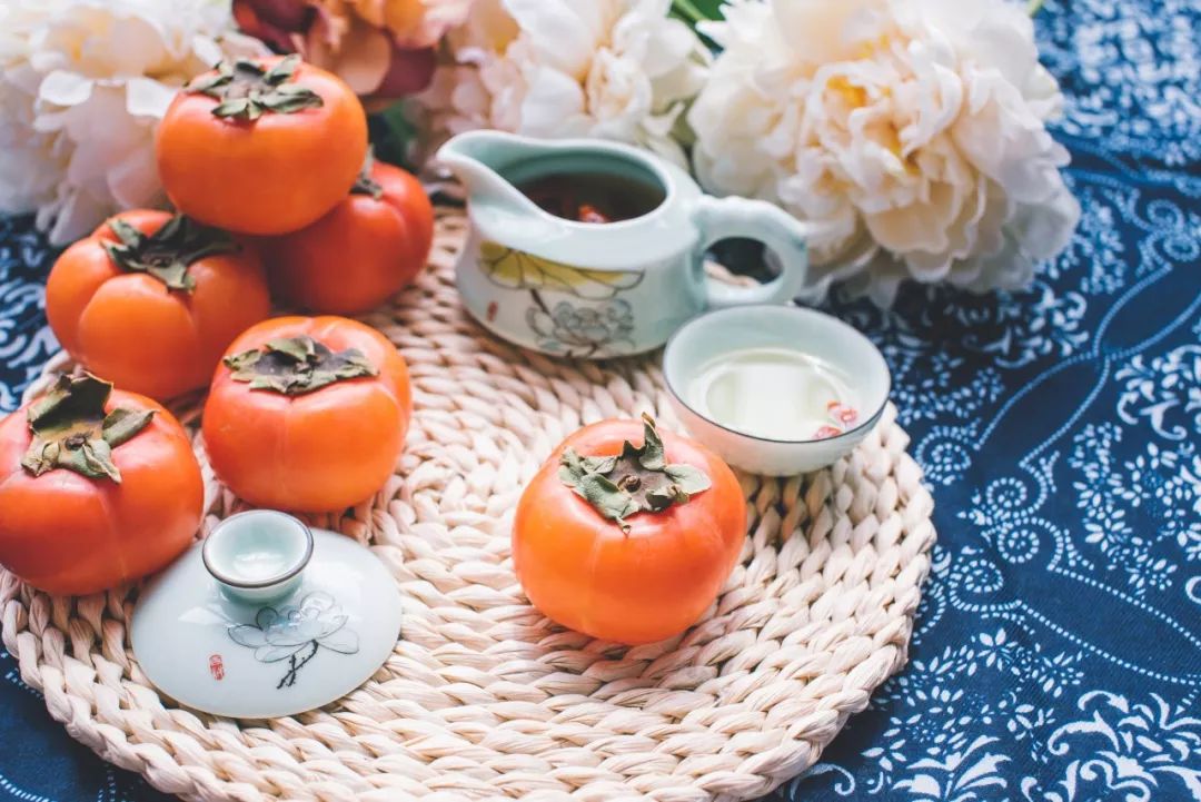 在乡间田野,柿子树的叶子落光了,红红的柿子高挂在枝头。吃柿子不但可以御寒保暖,还可补筋骨呢。