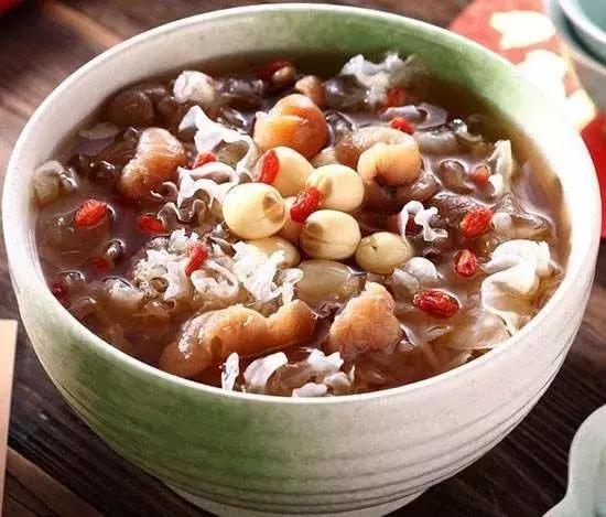 水果有梨、提子、荸荠、香蕉等;蔬菜类有胡萝卜、冬瓜、莲藕、银耳和豆类、菌类、海带、紫菜等。