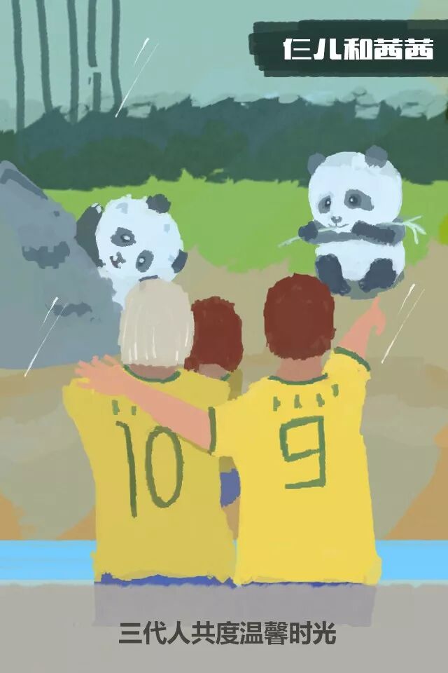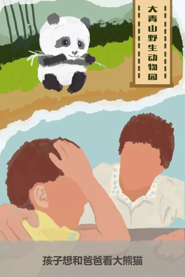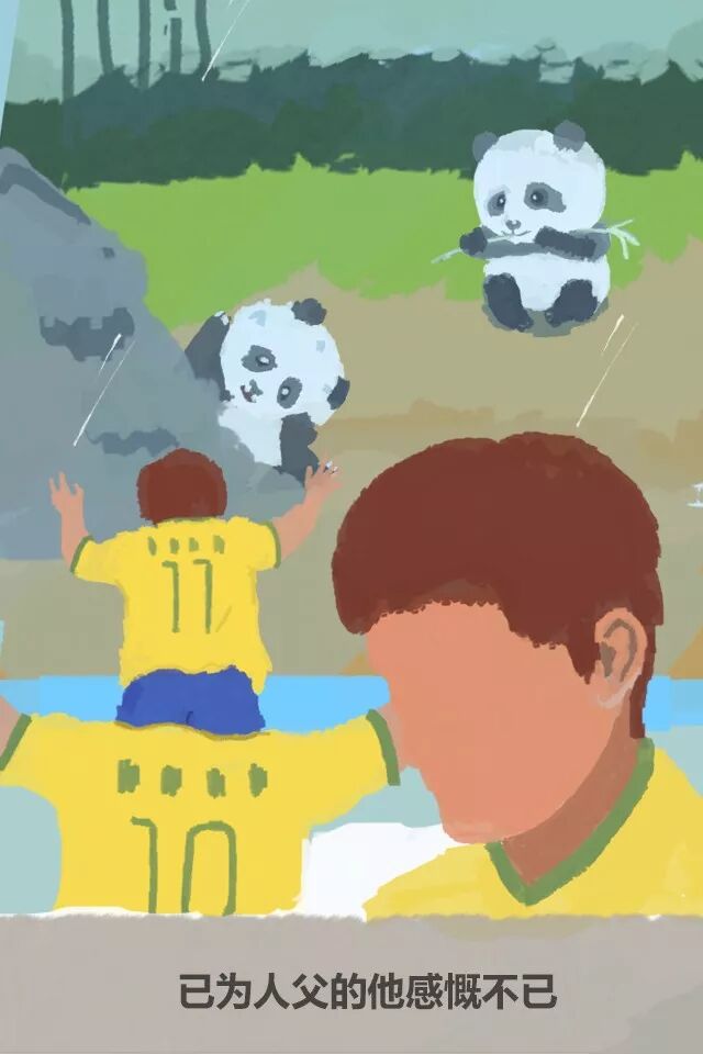 孙子:太好了,爸爸最好啦!爸爸爷爷快来看!这只熊猫在打滚儿!哈哈