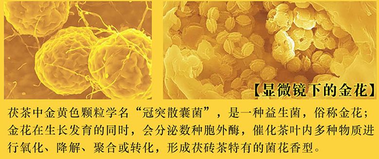 世界一流的微生物学家王志伟博士,在日本研究微生物与食品发酵达18年,称茯砖茶是世界上最神奇的食品。茯砖茶必须有“金花”。除了黑茶,在自然界中唯一只有在灵芝中曾发现过它。