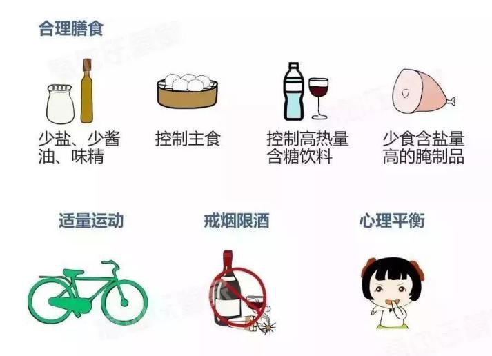 1.减少钠盐的摄入,每人每日摄入降至6g以下;