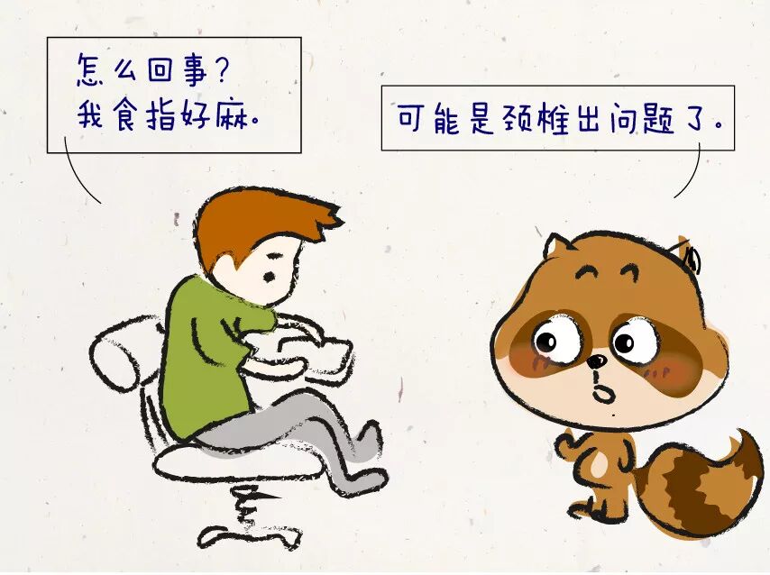 食指、中指发麻时,提示第6~7节颈椎神经根受压。