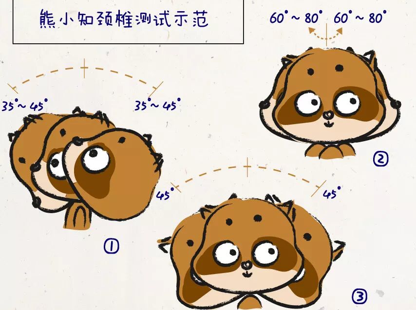 如果活动范围达不到正常标准,或者左右两侧活动度不对称,说明颈部肌肉或韧带劳损,或颈椎生理曲度发生了变化。