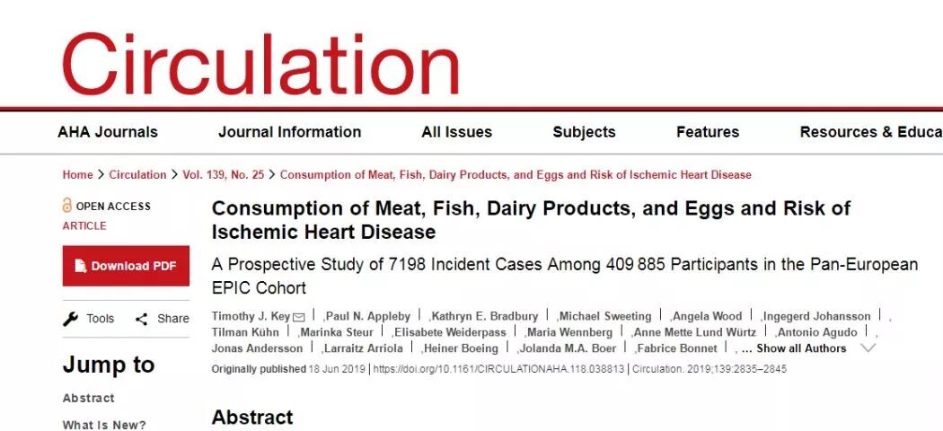 调整年龄等混淆因素后,他们得出结论:每天增加半份(serving)红肉摄入,与未来8年全因死亡风险增加10%有关。 红肉也分种类,包括不加工红肉(一般的牛猪羊肉)和加工红肉(培根、热狗、香肠、腊肠等),它们所增加的全因死亡风险率分别为9%和13%。 研究人员总结,减少红肉摄入量,同时多吃全谷物、蔬菜或其他蛋白质食物,如去皮禽肉、鸡蛋和鱼,在男性和女性中都与较低的死亡风险有关。 随后,美国《循环(Circulation)》杂志刊登一项研究显示,红肉和加工肉摄入量与缺血性心脏病发生风险之间呈正相关。