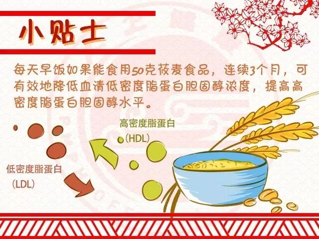 燕麦麦还有良好的降血脂和预防动脉硬化症的作用。有的实验指出,每天早饭如果能食用50g莜麦食品,连续3个月,可有效地降低血清低密度脂蛋白胆固醇浓度,提高高密度脂蛋白胆固醇水平,而且对肝肾无任何不良反应,这对高脂血症合并肝肾疾病及糖尿病患者更为适用。