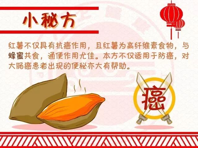 日本科学家研究发现红薯的抗癌作用超过人参,熟红薯的抑癌作用为98.7%,居于日本癌症研究中心公布的抗癌食物首位。同时,红薯具有抗炎、抗菌、抗病毒、抗过敏、抗肿瘤、降血压、降血脂和保肝等作用。