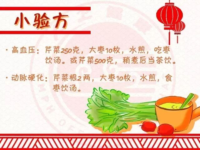芹菜性甘、凉、无毒。有调经、消炎、降压、镇静、清热止咳、健胃利尿作用。所以常吃芹菜,特别是吃芹菜叶,对高血压、动脉硬化、小儿软骨病等都有一定的治疗作用。