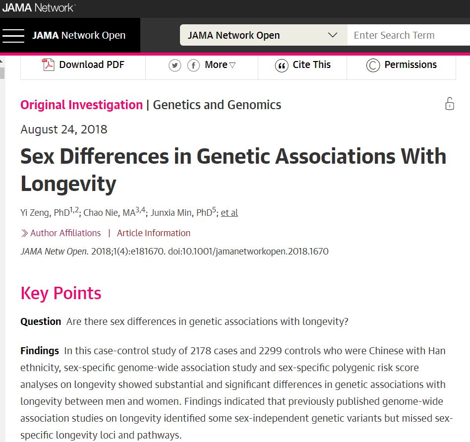 原因何在?《美国医学会杂志》一项研究,从基因角度给出了答案。为你解读男女的长寿基因差异。