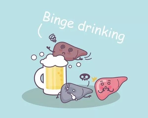 长期饮酒会造成肝功能慢性受损,日积月累会出现酒精肝。而大醉一回,等于得一次急性肝炎。