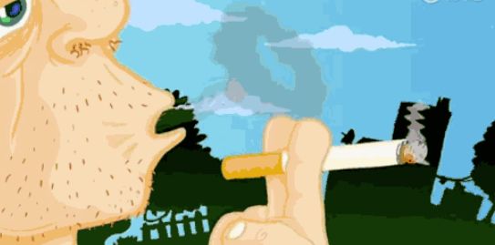 3、吃饱喝足后,又开始吸烟,享受香烟带来的快感,肺却难受地咳嗽了起来。而溢满坏胆固醇的心脏,也吐出了自己的舌头。