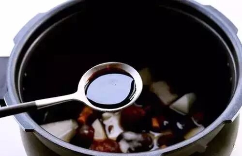 5、最后加入一汤匙红烧酱油。没有红烧酱油的话可以用生抽和老抽代替。