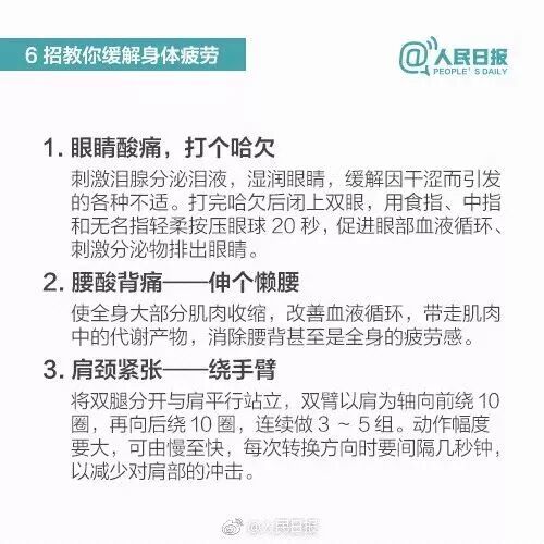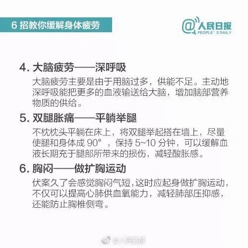 人总要在失去后才知道珍惜,才会去反思,究竟有什么工作会比生命更宝贵呢?以下是人民日报曾制作的“抗疲劳手册”,分享给追梦路上的每个人!愿我们都能平衡好工作和休息,远离过度加班,过好充实有意义的每一天。