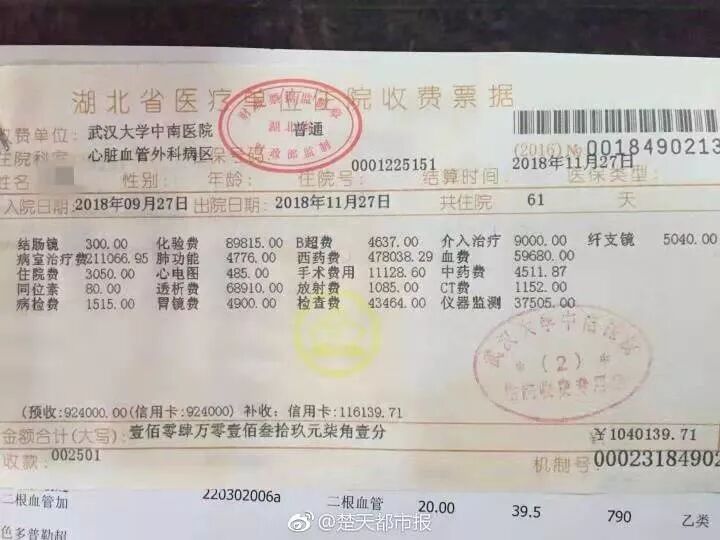 住院61天,两个月,花掉104万。这个数字让无数中国人心颤: