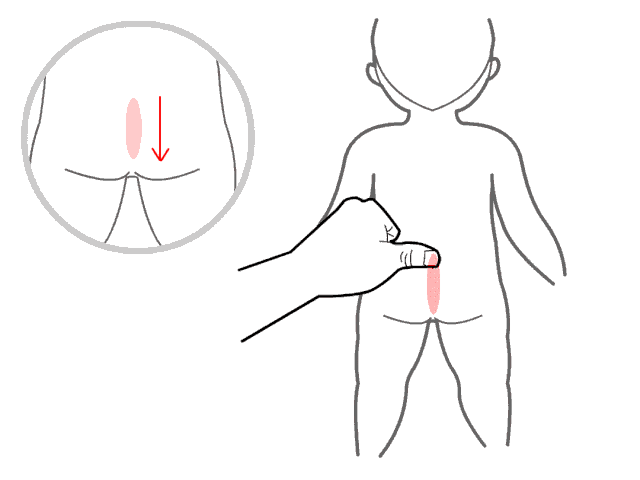 手法:在大腿内侧,自膝盖上缘至腹股沟成一直线。将食、中二指并拢,自患儿膝关节内侧向上推至腹股沟,称为推箕门。一般推100-300次。
