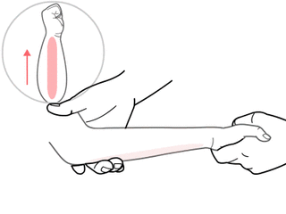 用拇指自肘推向腕部,100~300次。