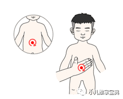 用手掌掌面或示中环指指腹着力,在小儿腹部做顺时针方向环形抚摩3分钟。