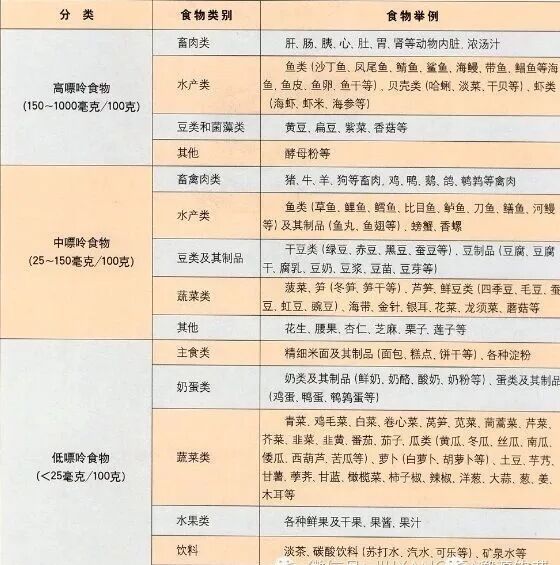 关于高尿酸血症即痛风饮食的参考(每100克中/毫克 ):