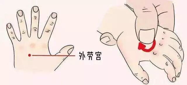 手法:以拇指或中指指端揉之,称揉外劳宫。