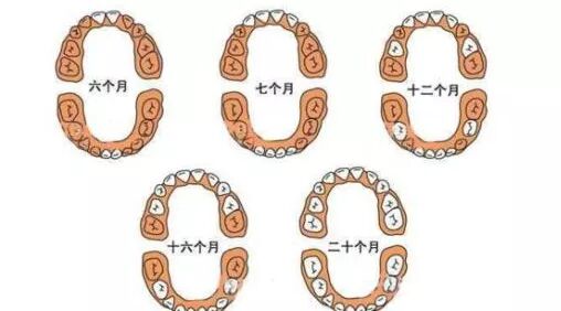 很多妈妈们一般都会以为宝宝的牙齿是一颗一颗长出来的,其实事实并非如此,宝宝的第一次长牙一般都是下牙床同时出现两颗中间的门牙。之后就会保持着一个月长出一颗牙的速度,到了宝宝2岁半左右,他的20颗乳牙就会全部长出来了。