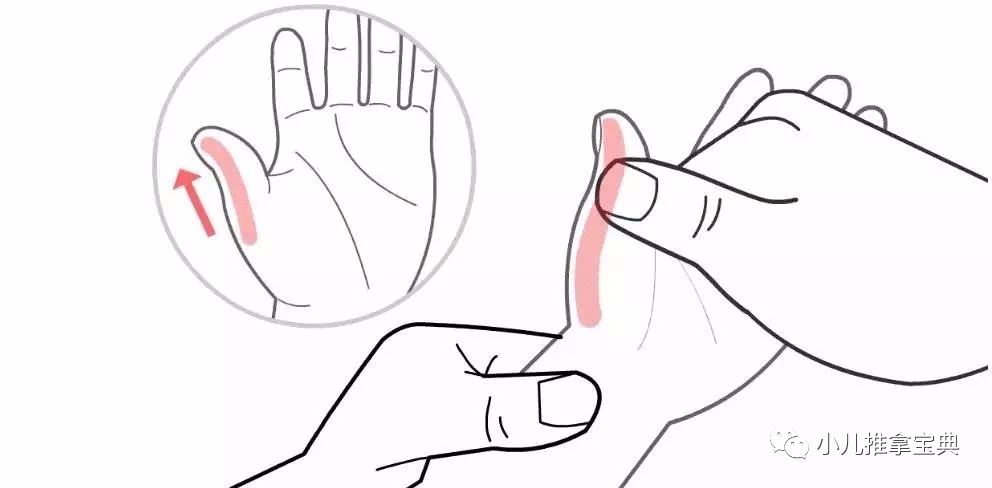 位置:宝宝前臂内侧正中,自腕横纹至肘横纹成一直线,称为天河水。