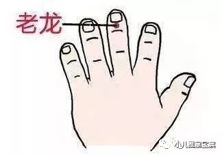 手法:用拇指指甲作掐法,称掐老龙,掐3-5次。