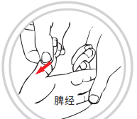 循宝宝拇指桡侧由指尖直推向指根方向为补脾经(亦可旋推患儿拇指螺纹面)。