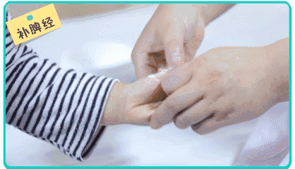 操作方法:用拇指指腹沿着小儿拇指桡侧,从指尖推向指根,反复操作500次。