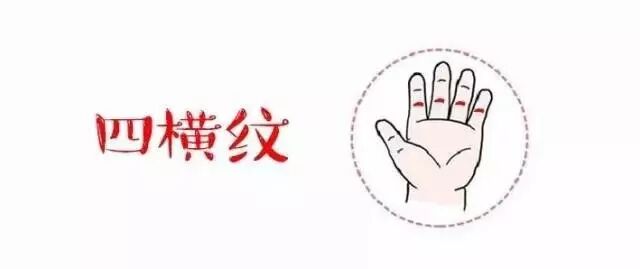 四横纹位置:手掌面,食指至小指,4个手指的第一指间关节横纹(标红处)。