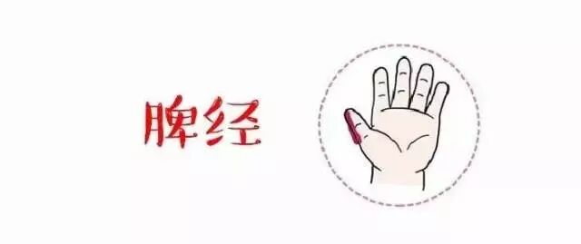 脾经位置:拇指桡侧自指尖至指根处。