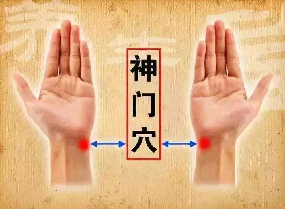 平常没事的时候用拇指指端反复点按神门穴30次,可以去除烦躁、安神定志。按揉此穴时力量不需要太大,也不必追求酸胀感。