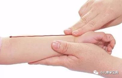 推法:用拇指桡侧面,或食、中二指面自腕推向肘,称推三关。