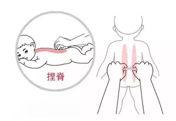 做法:由下往上提捏孩子脊旁1.5寸处3-5遍,每捏3次向上提一次。
