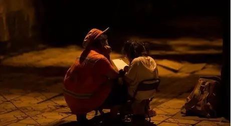 有时候工作太晚,只能委屈孩子在路边写作业。