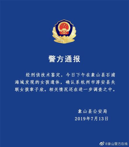 9岁的欣欣遗体在海里被找到了。