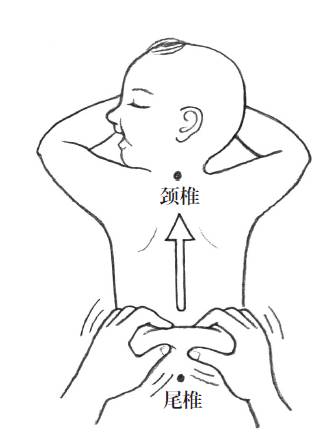 8、分推理气。捏脊完成后,孩子背部的肌肉比较紧张,这时再用手掌从上至下。沿着脊椎向两边分推。最后再沿着孩子的腋下轻轻向下抹5遍,起到宽胸理气的作用。这样,整个按摩就全部完成了。