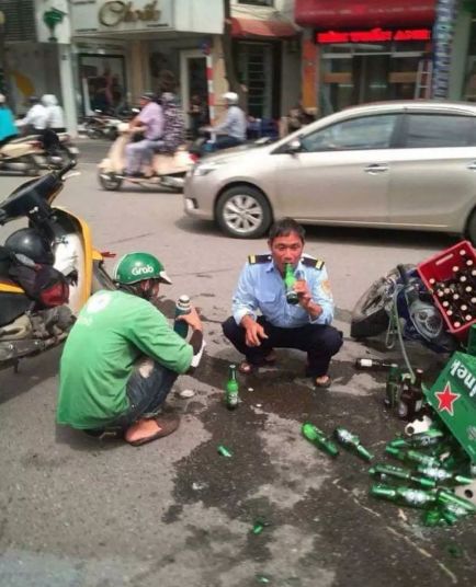 车上满箱的啤酒瞬间碎了一地。