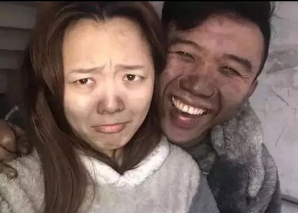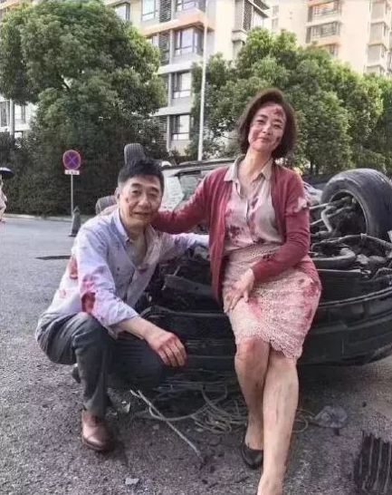 在确认两人并无大碍后,夫妻俩竟然一脸开心的拍起了照片。