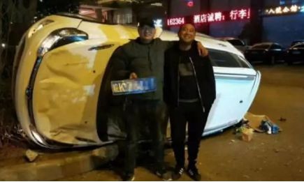 在路上出意外翻车,