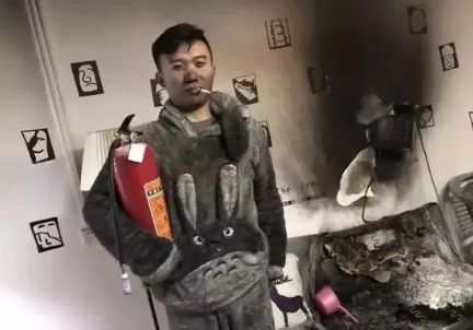 整个房间被烟火熏黑。