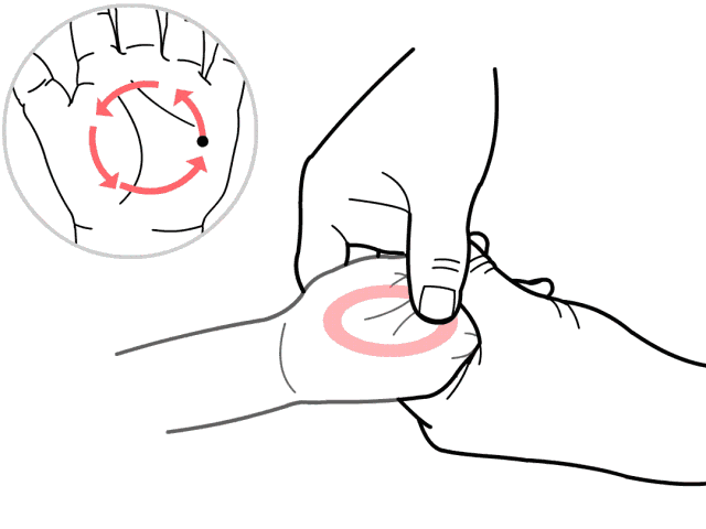 大手指的桡侧,由指根到指端(一定要到大手指的指甲角 少商穴的位置)。