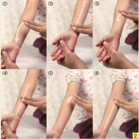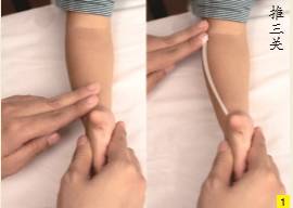 另外,蘸水捏脊也是我给雨欣用过最有效的退烧手法。一般我会捏脊 20~30遍。捏脊具有双向调整作用,既能驱寒,又能清热凉血。反复蘸水捏脊20~30遍。捏脊时由于发烧散热快,后背的水会干掉,就反复再蘸水,最后一遍不等宝宝后背的水蒸发干,妈妈们要用嘴从下往上吹,直吹到大椎穴,把水汽吹散、吹干。这个手法也称为“脊背吹水”,这是北京一位非常德高望重的中医老师的心得真传,我在实际操作中做了一些手法上的改良,对退烧非常有效。